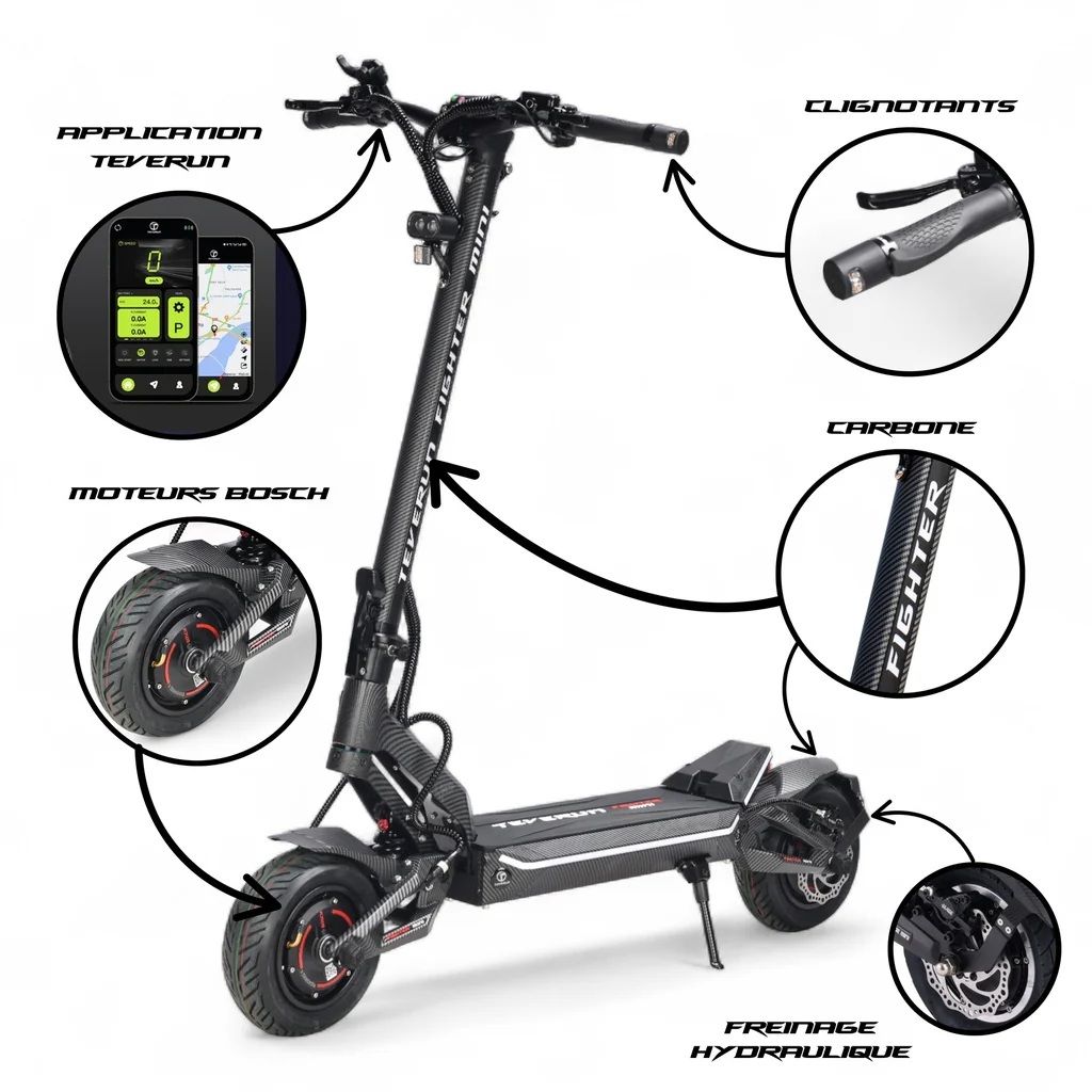 Teverun Fighter Mini ECO 2026 – motor Bosch | Scuter electric 10 inch – baterie 20,8Ah